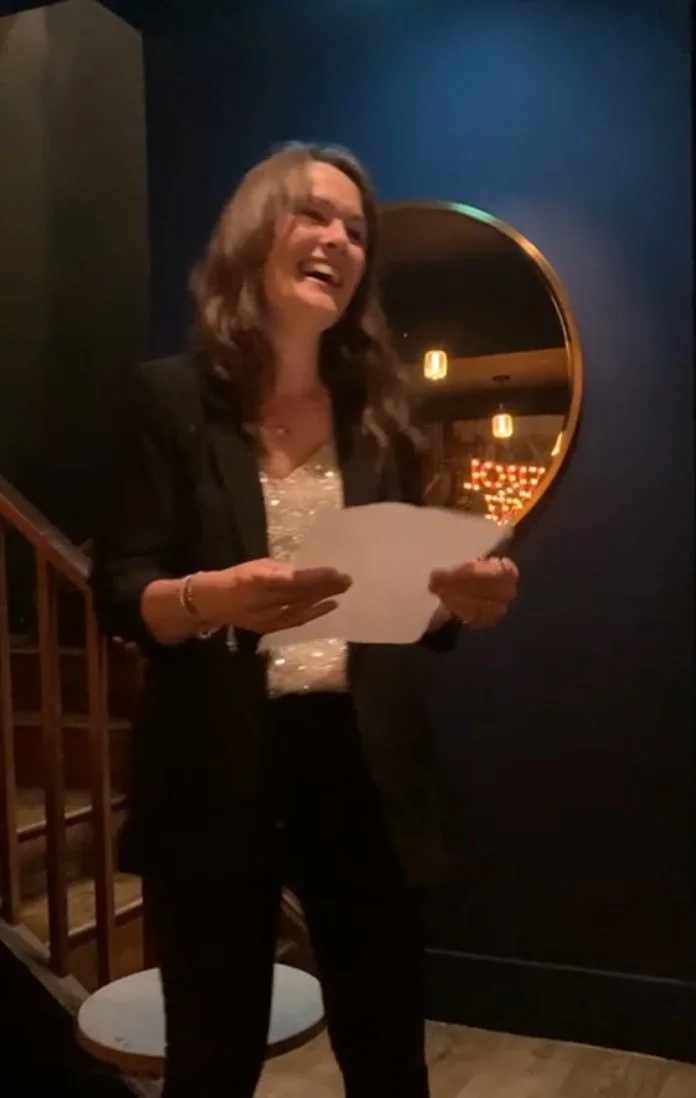 Rachel Norrington sharing her poem for the first time at an open mic poetry evening
